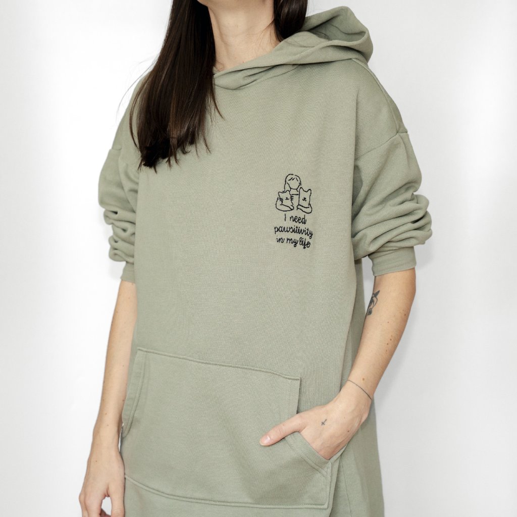 Upcyklovaná mikina I need pawsitivity in my life